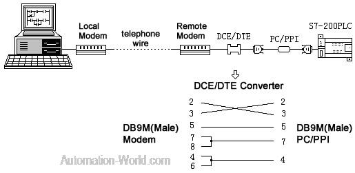 3, long-distance communications between the PLC and computer via telephone lines: